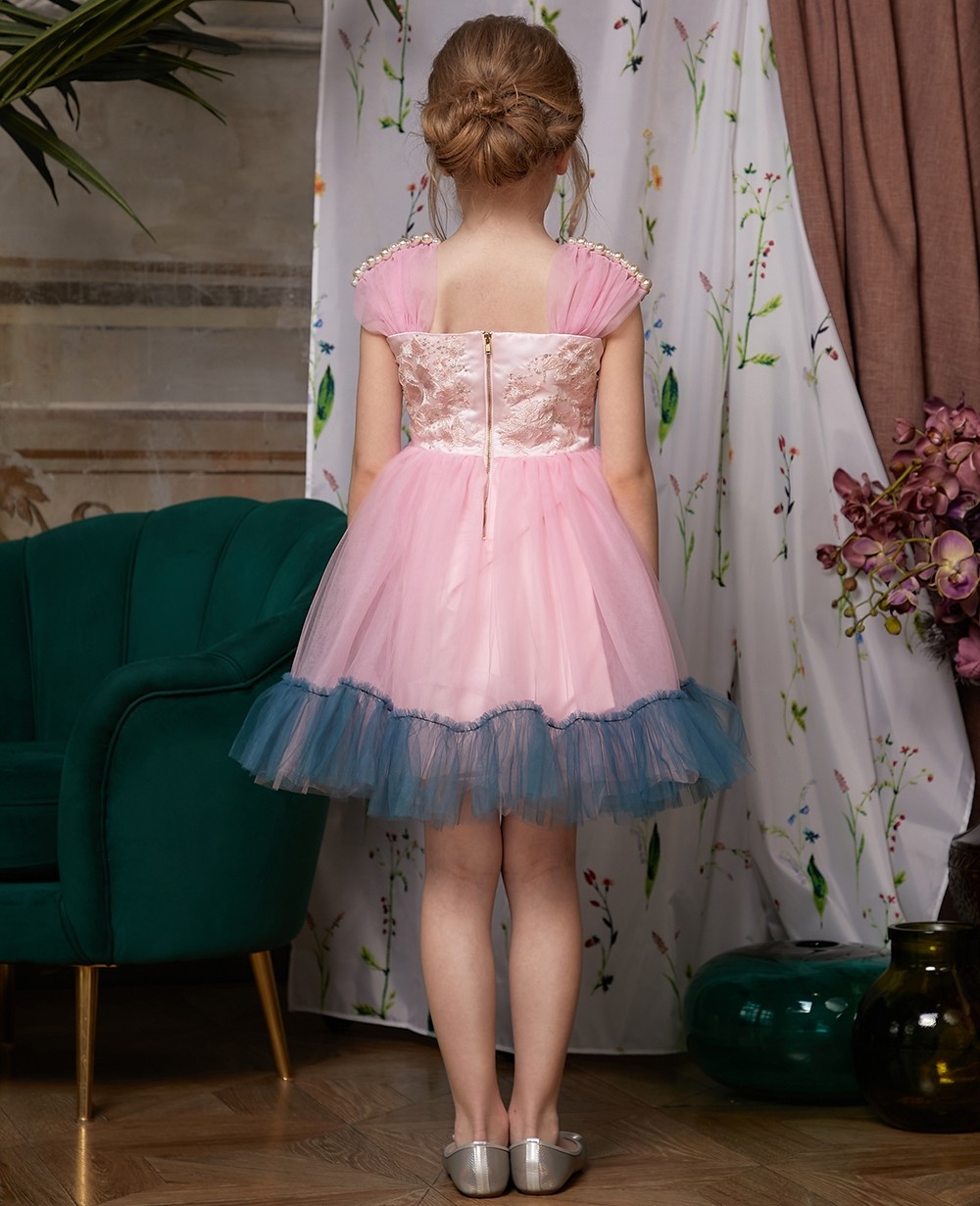 | Description | This beautiful Le Mu dress made with baby pink satin, with pink lace flora embellishment details decorate on the chest,pleated tulle on the shoulder. pink and teal ruff joined at the bottom gives the dress full of layers. This dress is lined in satin backed in soft cotton, and it fastens with a zip on the back. Comes with a pearl hanger and Le Mu dress bag |